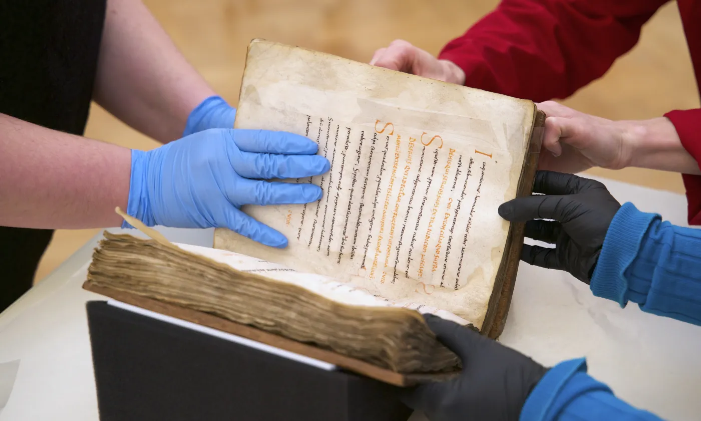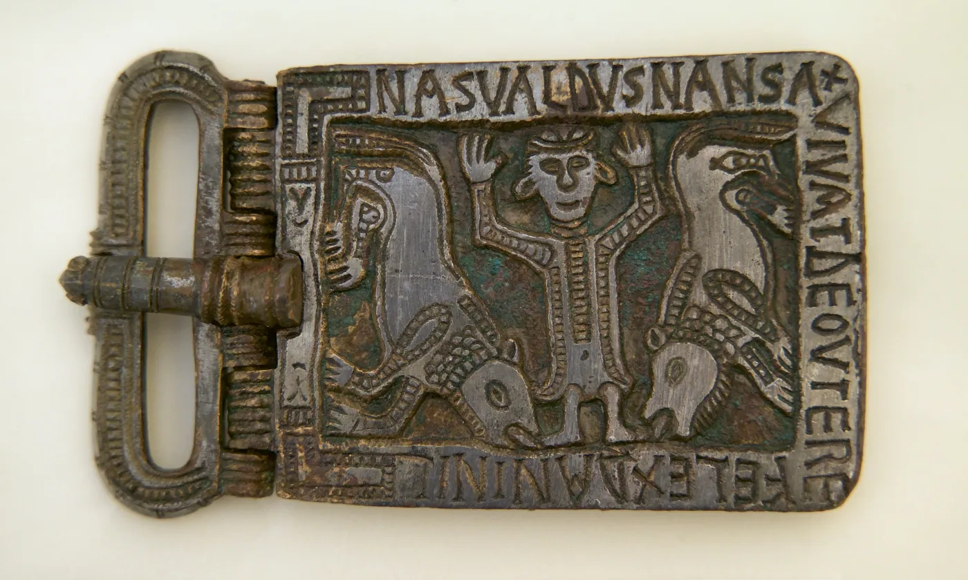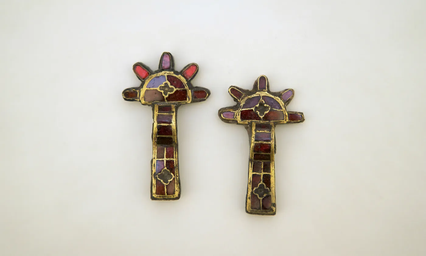 Une plaque-boucle en bronze représentant David dans la fosse aux lions, datant des VI-VIIe siècles. © Max idje Un coffret à hosties en ivoire, sur le thème des femmes aux tombeaux, datant du VIe siècle. © Max idje Une paire de fibules, épingles à vêtement, ornées de grenats. © Max idje Stèle de calcaire. © Max idje Recueil de textes de droit ecclésiastique conservé dans les Archives du Chapitre de Sion, réalisé au IXe siècle. © Max Idje Previous Next cultureLumière sur le Haut Moyen ÂgeMarie Destraz4 février 2020Dans l'exposition «Aux sources du Moyen Âge, 350-1000», au Palais de Rumine à Lausanne, six siècles se dévoilent à coup d'objets sortis des tombes.