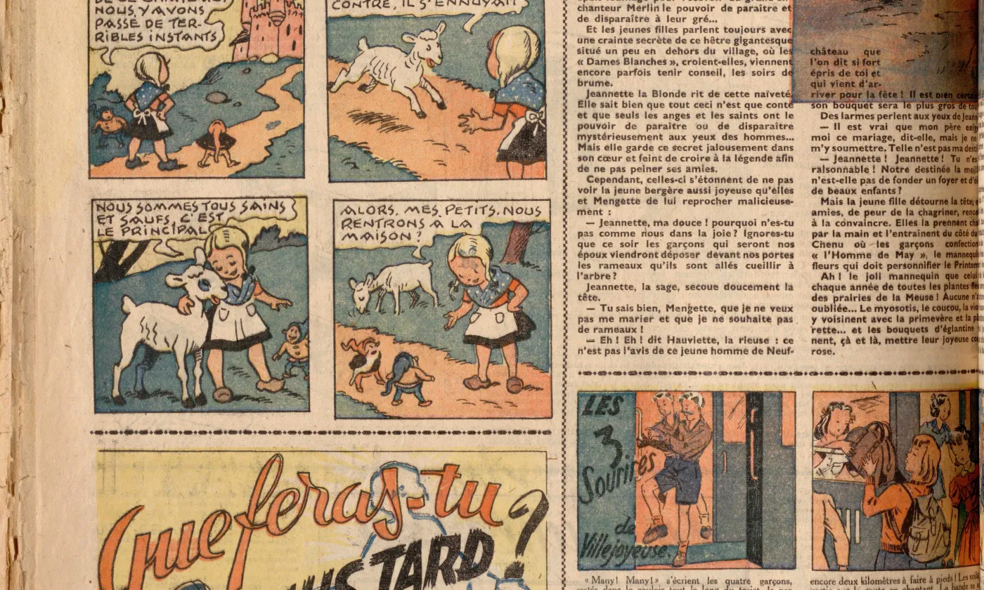 Le fonds du Centre B.D. de la Ville de Lausanne a la particularité d’avoir des séries relativement complètes de périodiques pour fillettes ce qui est rare. A voir jusqu'au 14 mai 2023 à l'occasion de l'exposition «C’est quoi ton genre de B.D.?»