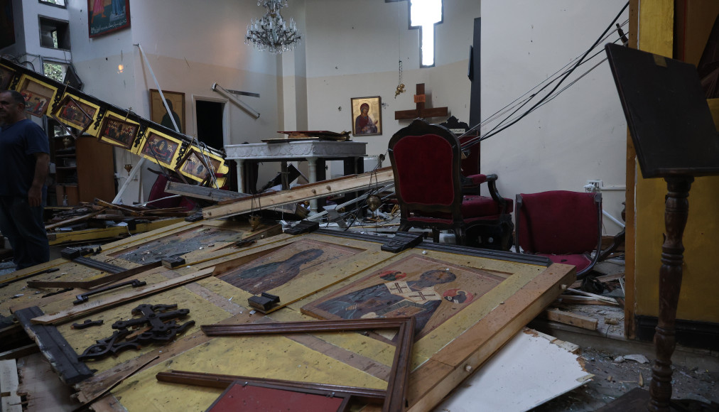 Dommages sur les lieux d'un attentat-suicide à la bombe à l'église Mar Elias dans la banlieue de Damas, Syrie, 22 juin 2025.
