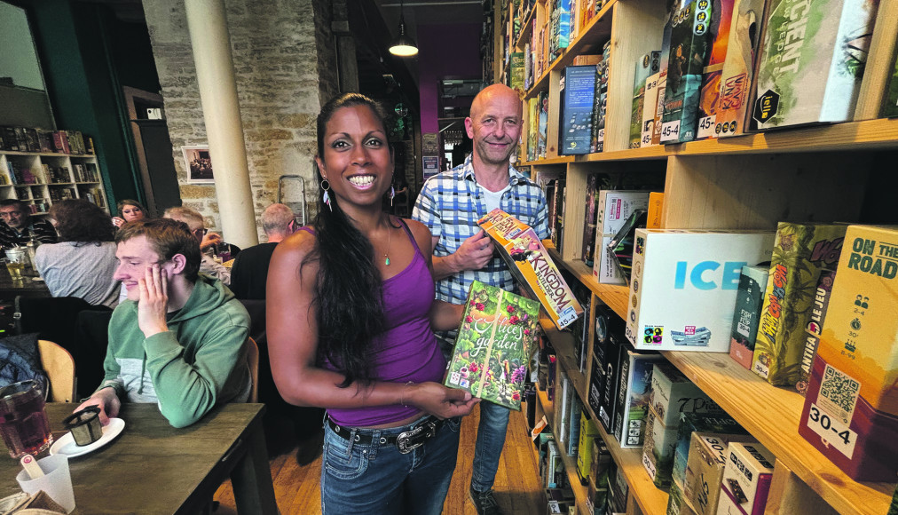 Sous les fresques d’un ancien manège à chevaux, L’Amuse-Bar a investi l’un des plus beaux bâtiments de La Chaux-de-Fonds. Ce soir de mai, les verres tintent, les rires fusent par instants. Mais, surtout, les regards sont concentrés: ici, pas de téléphones sur les tables, mais des pions, des cartes et des dés. Depuis janvier 2023, Vanessa Thomann et Stéphane Fleury font vivre avec passion ce lieu atypique, où près de 2000 jeux de société sont accessibles au public grâce à un partenariat avec Ludesco, le plus grand festival ludique de Suisse. Sur un mur spectaculaire, des centaines de boîtes aux couleurs vives s’empilent jusqu’au plafond, invitant à explorer un monde foisonnant de stratégies, de hasard et d’esprit d’équipe.