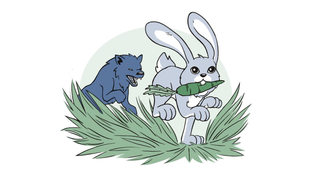 Un jour, un renard sortit de la forêt et découvrit le royaume des lapins. Il pouvait gambader dans les champs de carottes et de betteraves, goûter à de succulentes fraises. Mais, s’il fut plutôt bien accueilli, les lapins le trouvèrent un peu trop gourmand.