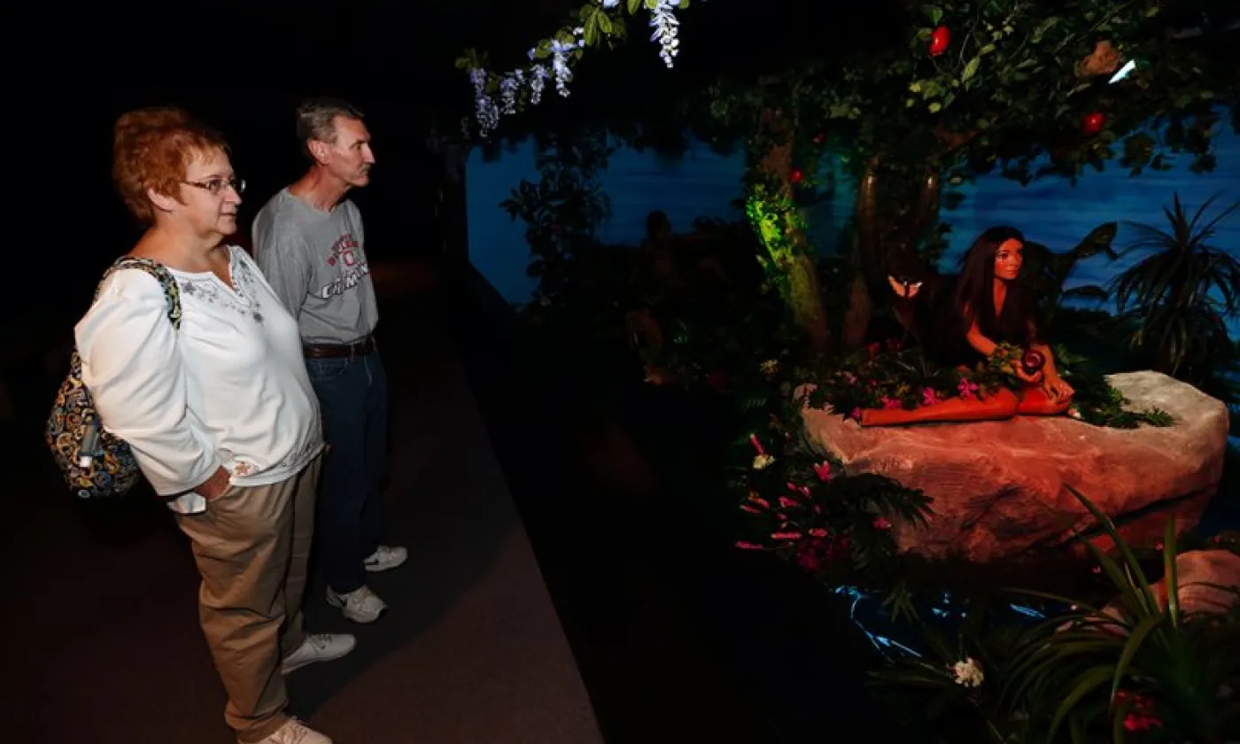 Un dimanche après-midi ensoleillé de fin septembre, environ 40 visiteurs sont venus à BibleWalk. Un groupe de quatre adultes parcouraient la vie de Christ, et ils chuchotaient qu’ils reconnaissaient l’histoire alors qu’un guide en uniforme illuminait chaque scène en pressant un bouton. On voit des éclairs à l’arrière-plan de la scène représentant la crucifixion de Jésus. La poitrine de la fille de Jaïrus monte et descend tandis que Jésus ordonne à la fille décédée de se lever. Des enfants habillés pour représenter «chaque race, croyance et nation» entourent Jésus dans une des seules scènes qui n’ont pratiquement pas changé depuis que le musée de cire a été inauguré il y a plus de 30 ans.
