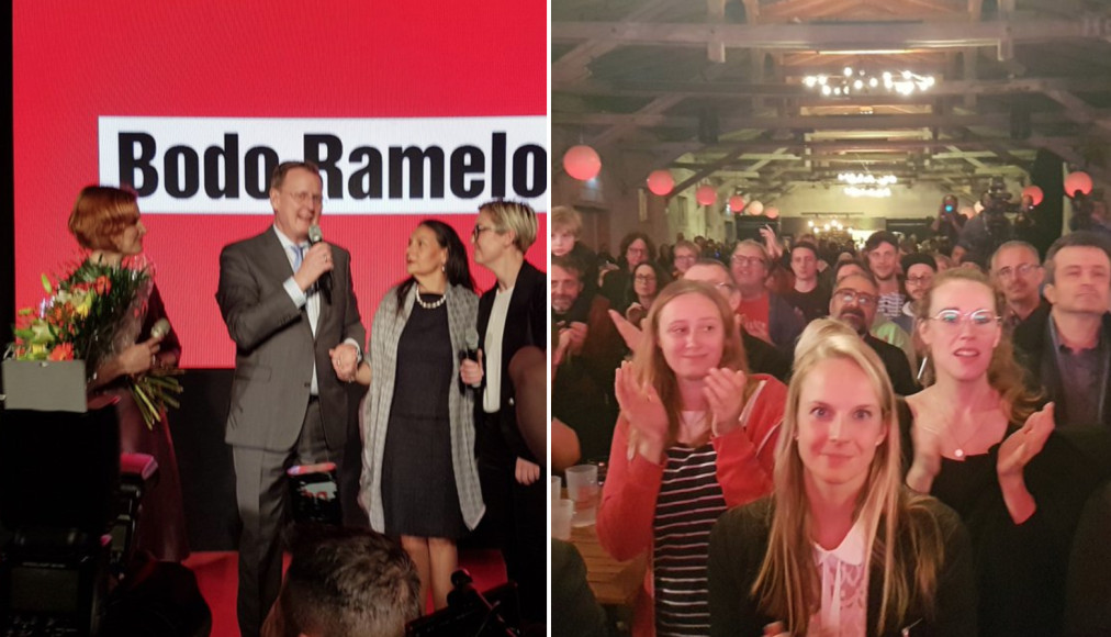 L’étiquette de gauche radicale ne s’explique donc pas par la politique actuellement pratiquée par « Die Linke ». Elle trouve son origine dans une stratégie visant à contester la légitimité démocratique du parti en renvoyant dos-à-dos La Gauche et L’Alternative pour l’Allemagne qui, avec 23,4 % des voix, est devenue la deuxième force politique de Thuringe derrière La Gauche (31% des voix). L’une est censée incarner l’héritage, honni à l’ouest, du socialisme étatique, peu ou prou totalitaire, de la RDA, l’autre une droite radicale voire extrémiste ne faisant guère mystère de ses proximités avec les milieux néonazis, particuliers actifs en Thuringe. Hier soir encore, on pouvait entendre des représentants politiques d’Allemagne de l’Ouest s’échauffer en constatant que plus de 50% des électeurs de Thuringe auraient voté pour des partis « radicaux », avec lesquels toute coalition de gouvernement serait impossible, une position d’autant plus intenable que 68% des électeurs du Parti démocrate-chrétien sont ouverts à une coalition avec La Gauche de Bodo Ramelow (il s’agirait de la seule coalition disposant d’une majorité stable au parlement régional). Mais surtout, une position qui banalise la dangerosité de L’Alternative pour l’Allemagne ; fondée initialement par les adversaires de la politique monétaire de l’Union européenne (sur des positions somme toute proches de l’UDC), ce parti a connu en quelques années une dérive de plus en plus marquée vers des positions radicales et extrémistes incarnées tout particulièrement par le président du parti en Thuringe, Björn Hocke, dont les tribunaux ont reconnu qu’il était légitime de le traiter de fasciste.