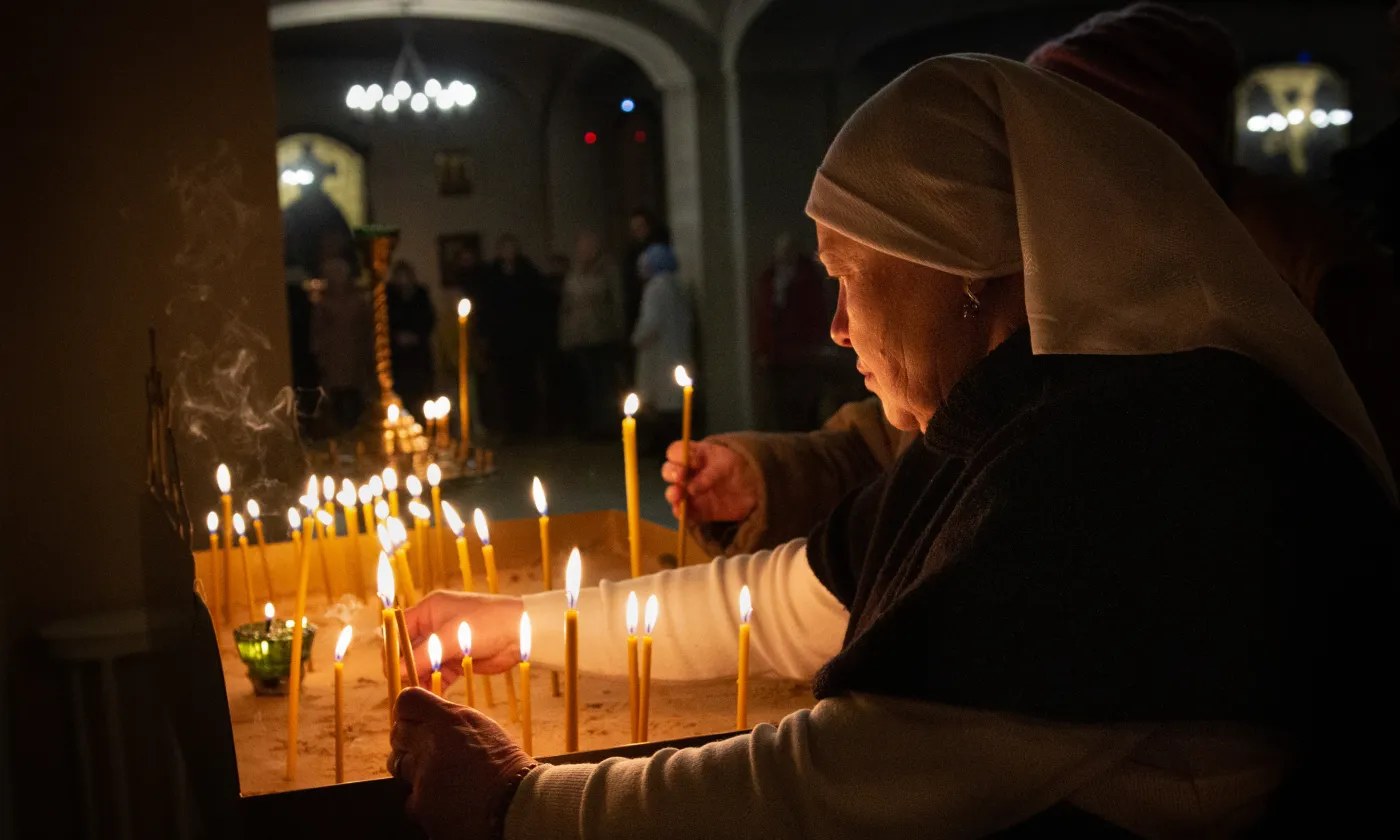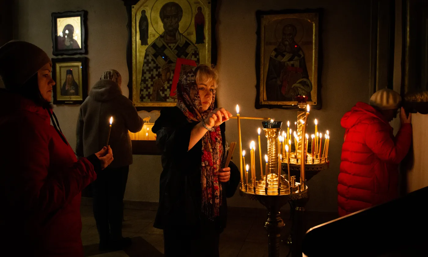 Andriy Halavin tient à préciser que, depuis la construction de l’église il y a dix ans, «la messe est dite en ukrainien», référence au fait que, depuis deux ans, les églises en Ukraine se déchirent, entre les communautés qui célèbrent en ukrainien, et celles qui, sous patronage russe, continuent à le faire dans la langue de l’ennemi. D’ailleurs une loi est passée, interdisant l’Eglise orthodoxe dépendante du patriarcat de Moscou. Même si, pour le prêtre, «quand les Russes sont venus, peu importait la confession: toutes les églises du coin ont été partiellement détruites. C’était aussi une façon d’effacer notre culture».