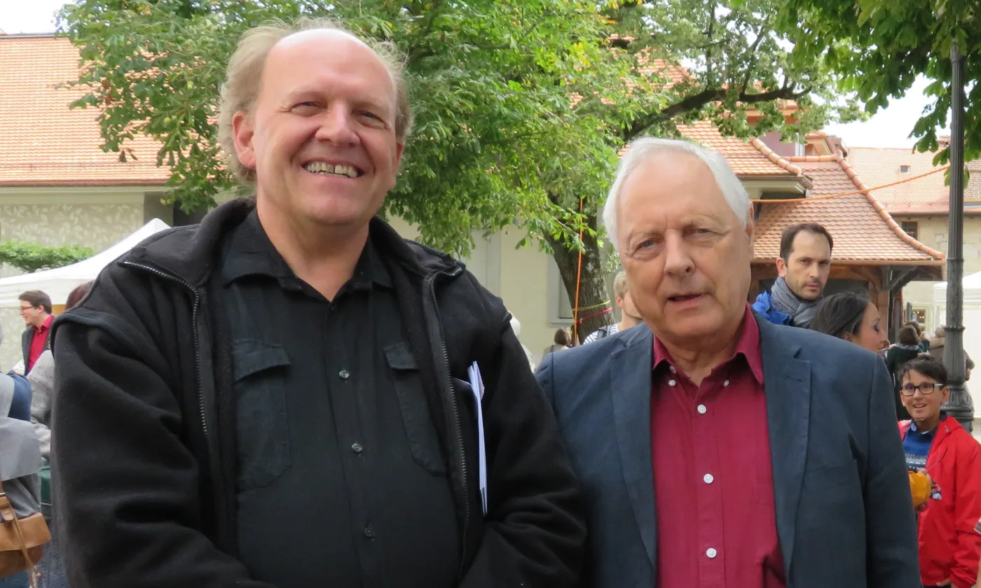 Pierre Gisel, professeur honoraire de la Faculté de théologie de l’Université de Lausanne (à droite)<br/>
