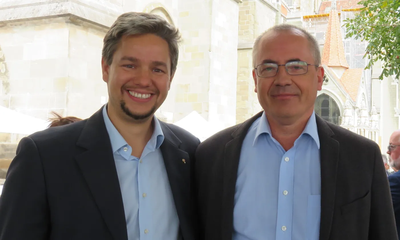 <div style="color: white;background-color: rgba(54, 171, 224, 0.5);">Simon Butticaz, professeur de théologie à l’Université de Lausanne (à gauche) <br/>