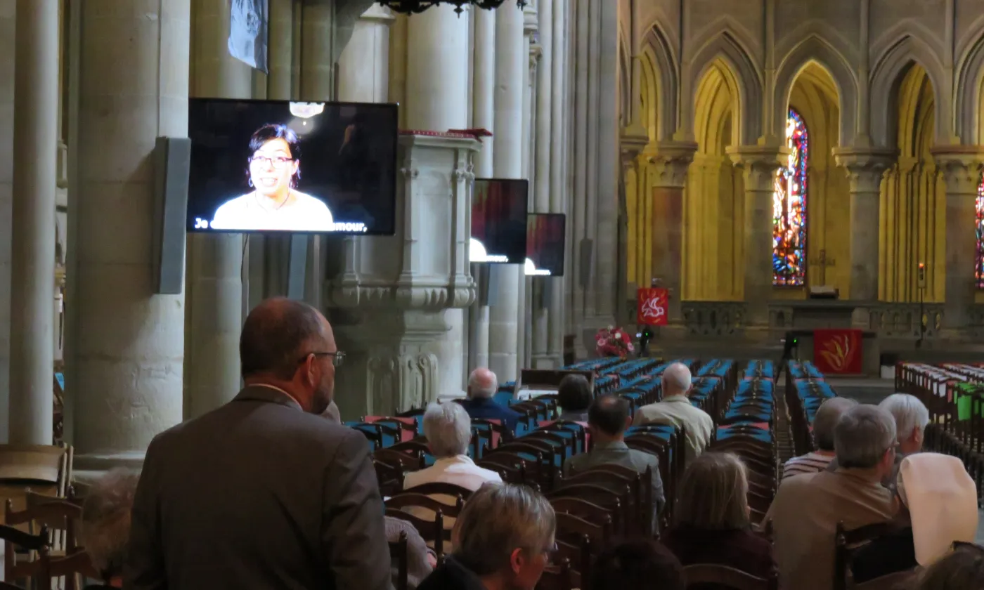 <div style="color: white;background-color: rgba(54, 171, 224, 0.5);">Durant l’après-midi, le film de témoignages «La vie, un appel!» était diffusé en boucle dans la cathédrale. </div>