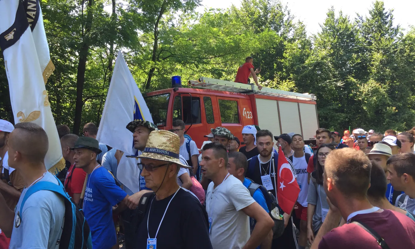 «J’ai perdu beaucoup d’amis, beaucoup de membres de ma famille. Je suis là pour rendre hommage à toutes les personnes qui sont mortes dans le génocide», confie avec émotion, Ćamil Ibrahimović, au matin du troisième jour de marche. Ce Bosniaque, Suisse d’adoption depuis 1993, a fui la guerre de Bosnie-Herzégovine. Il est revenu dans sa région natale pour participer à la Marche internationale pour la paix en mémoire des victimes du génocide de Srebrenica qui s’est déroulée du 8 au 10 juillet dernier. Plus de 5000 marcheurs ont parcouru environ 80 kilomètres, à travers la forêt, grimpant sur les collines par des chemins parfois extrêmement boueux. Ce parcours qui va de Nezuk à Potočari est le même que celui emprunté, le 11 juillet 1995, par les 15'000 Bosniaques fuyant alors la prise de Srebrenica par les forces armées serbes. Quelque 8000 d’entre eux ont été massacrés sur ce chemin. Depuis 2005, cette marche leur rend hommage. Et elle s’effectue dans le sens du retour: en 1995, les civils fuyaient Srebrenica, la marche quant à elle se termine au mémorial de Potočari, à côté de Srebrenica, où plus de 6000 victimes sont enterrées.