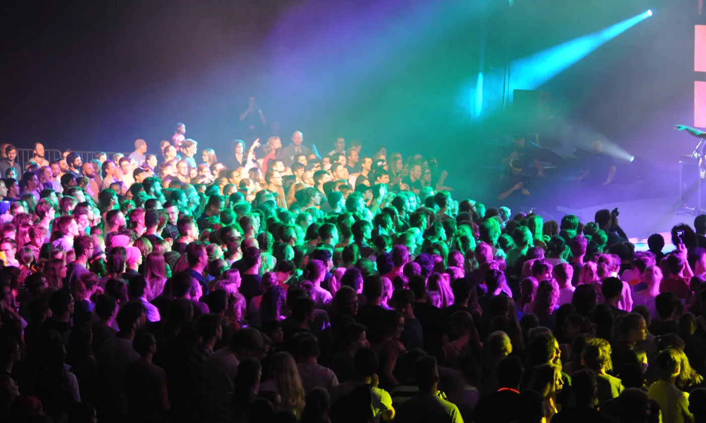 La chose se confirme en début d’après-midi. Les festivaliers et leurs accompagnants se retrouvent à l’Arena, une des plus grandes salles de concert de Genève à deux pas de l’aéroport. Derrière les portes tambour, c’est la cohue. Il faut montrer patte blanche. On tend son poignet, on montre son bracelet, avant de dévoiler le contenu de son sac au personnel de sécurité. On accède ensuite à un grand hall dans lequel flotte une odeur de churros et de crêpe au sucre. C’est là que se trouvent les stands missionnaires DM- échange et mission et Mission 21. Sur une petite estrade, une animatrice commente un match de «Bubble Soccer» tout en souhaitant la bienvenue aux nouveaux arrivants. «Welcome to Reformaction», répète-t-elle régulièrement dans un anglais aux intonations suisses allemandes. Dans un coin, une partie du staff finit d’installer la boutique à goodies de Switchfoot, le groupe de rock chrétien dont le concert débutera à la nuit tombée. On pénètre enfin dans la salle obscure où près de 4600 personnes sont en train de prendre place. Tout le monde est assis. Plus une chaise de vide dans le parterre. Les gradins sont assaillis. Sur un écran géant un chronomètre égrène les secondes jusqu’au coup d’envoi. «Füf! Vier! Drü! Zwöi! Eis!»: le public scande le décompte et le show, tel une montre suisse débute à 15h pile sous un tonnerre d’applaudissements et de cris stridents.